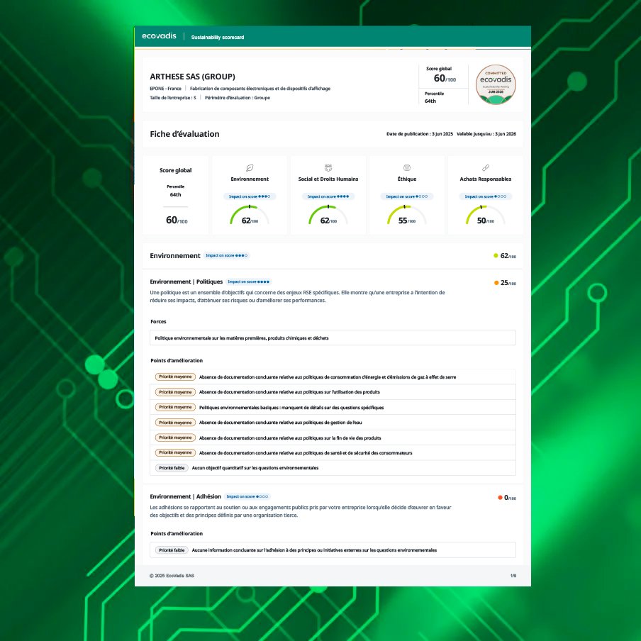 Chez Arthese, nous avons une responsabilité particulière en tant qu’entreprise technologique : celle de conjuguer haute performance technique et responsabilité sociétale. Nos engagements RSE se traduisent par :